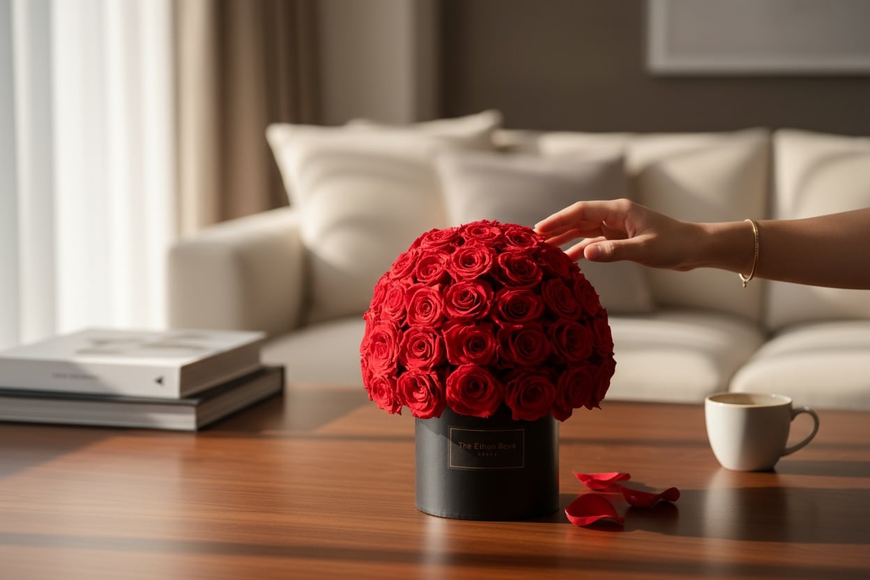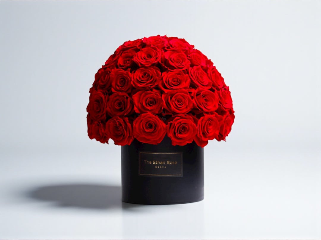 自然のバラに特殊な加工を行い、年単位で長持ちするよう加工した高級なバラ(プリザーブドフラワー)です。