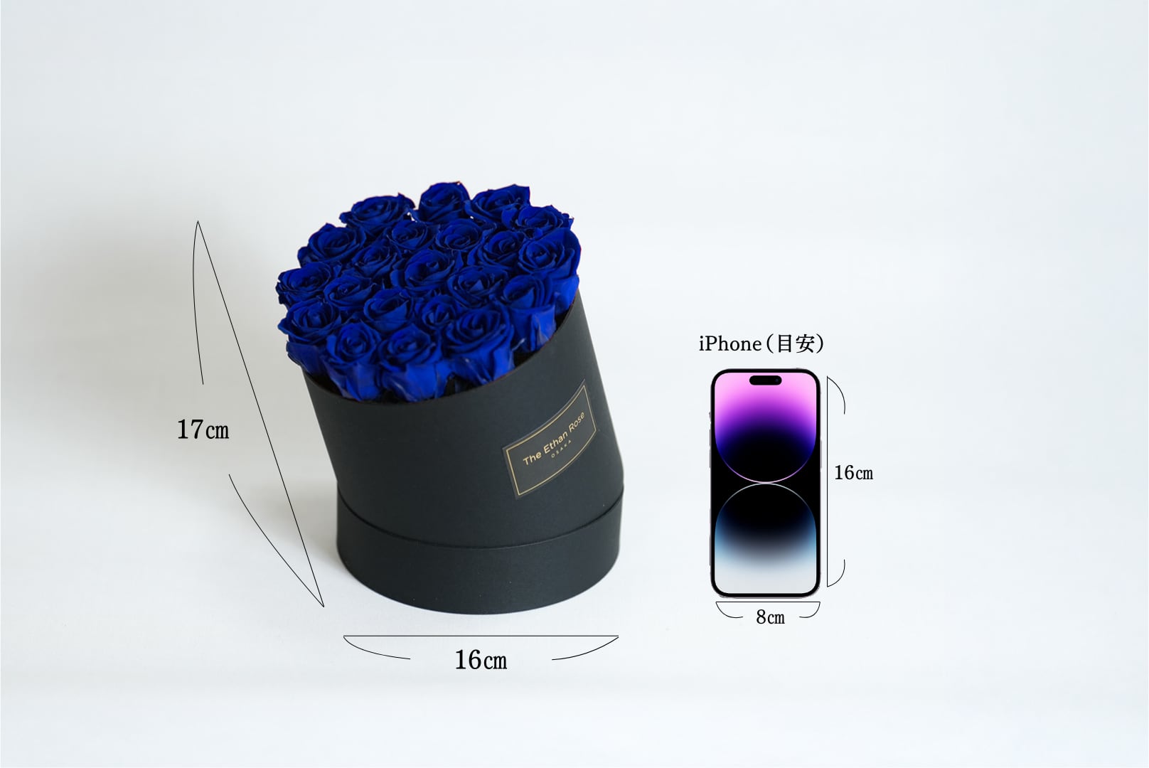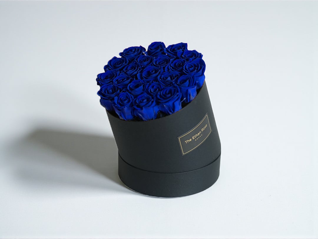 ブルーローズを21本使用した、大人のためのローズボックスギフト。