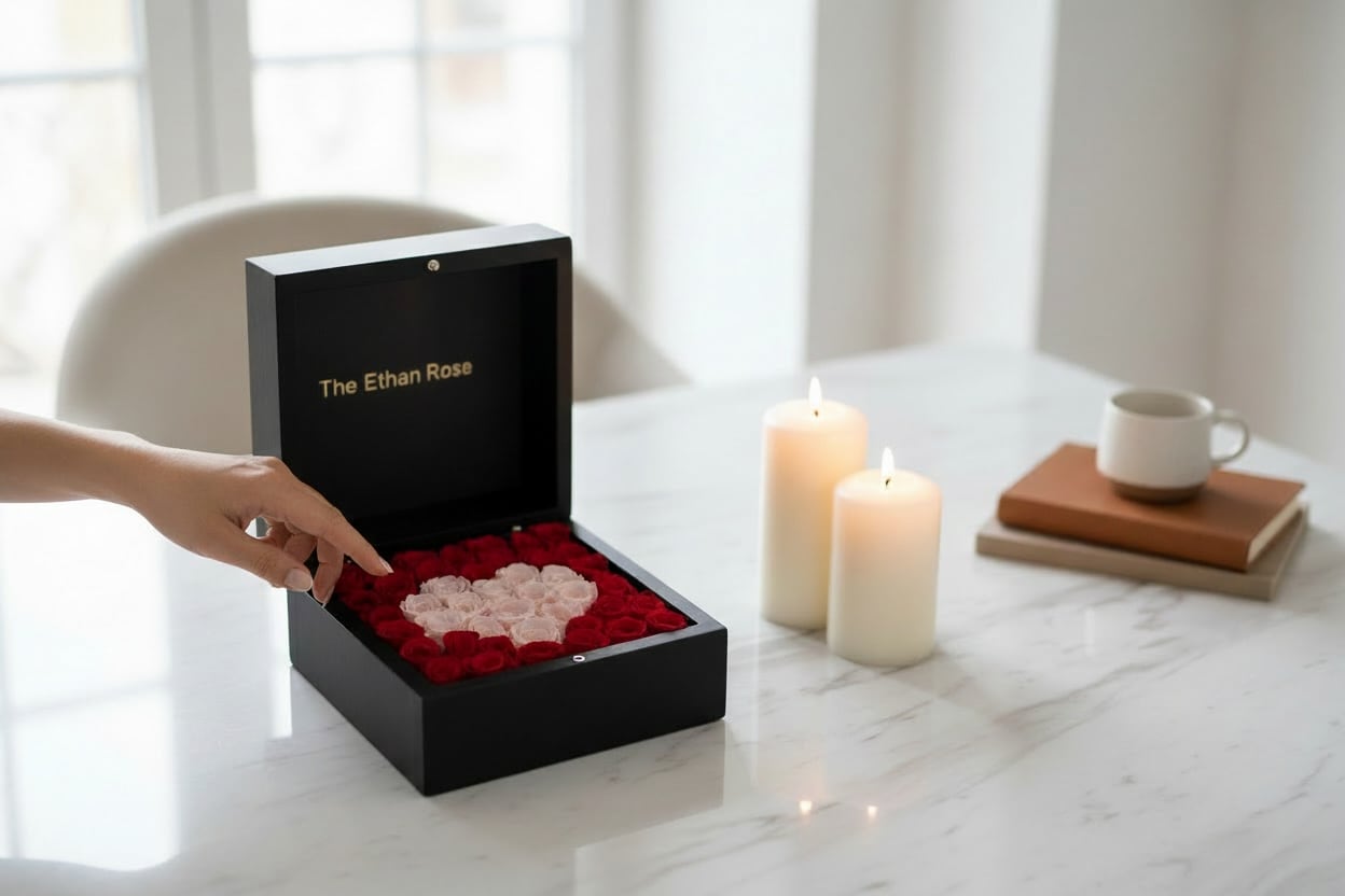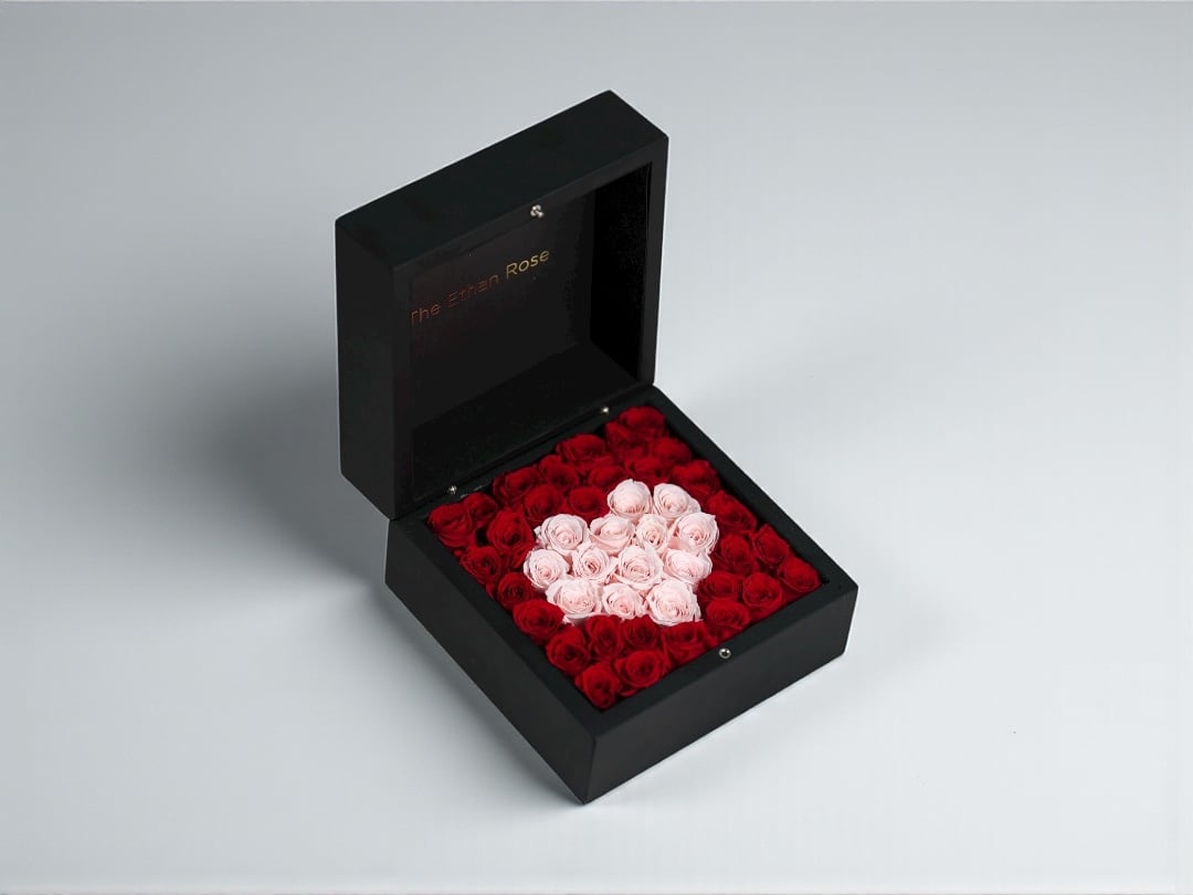 自然のバラに特殊な加工を行い、年単位で長持ちするよう加工した高級なバラ(プリザーブドフラワー)です。